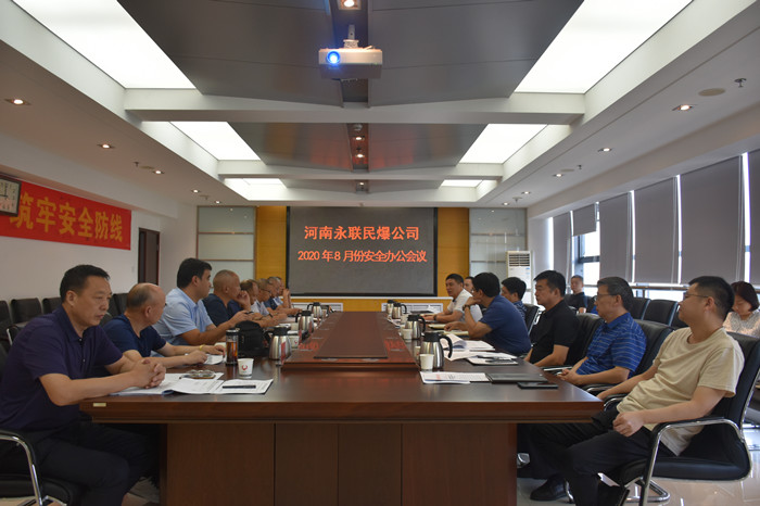 2020年8月31日,河南省永聯民爆器材股份有限公司召開了8月份安全辦公會議,公司領導班子、安委會成員、安委會辦公室成員以及淇縣、西峽縣、澠池縣、登封市、汝州、陜州等6家分公司負責人參加了會議。會議由公司副總經理靳義國主持,公司董事長、總經理劉嵩參加會議并講話。