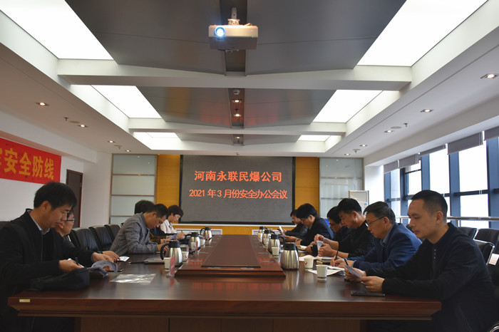 2021年3月31日,河南省永聯(lián)民爆器材股份有限公司召開了3月份安全辦公會議,公司領(lǐng)導(dǎo)班子、安委會成員、安委會辦公室成員以及寶豐縣、新縣、義馬市、桐柏、南召縣、泌陽縣等6家分公司負責(zé)人參加了會議。會議由公司副總經(jīng)理靳義國主持,公司董事長、總經(jīng)理劉嵩參加會議并講話。