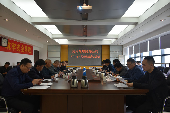 2021年4月29日,河南省永聯(lián)民爆器材股份有限公司召開了4月份安全辦公會議,公司領(lǐng)導(dǎo)班子、安委會成員、安委會辦公室成員以及靈寶市、嵩縣、魯山縣、淇縣、登封市、焦作市等6家分公司負(fù)責(zé)人參加了會議。會議由公司副總經(jīng)理靳義國主持,公司董事長、總經(jīng)理劉嵩參加會議并講話。