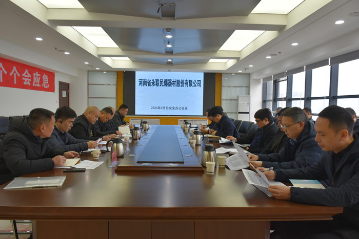 2024年2月29日,河南省永聯(lián)民爆器材股份有限公司召開了2月份安全辦公會(huì)議,公司領(lǐng)導(dǎo)班子、安委會(huì)成員、安委會(huì)辦公室成員以及駐馬店市、嵩縣、舞鋼市、焦作市、衛(wèi)輝市、鄧州市等6家分公司負(fù)責(zé)人參加了會(huì)議。會(huì)議由公司副總經(jīng)理靳義國(guó)主持,公司董事長(zhǎng)、總經(jīng)理劉嵩參加會(huì)議并講話。