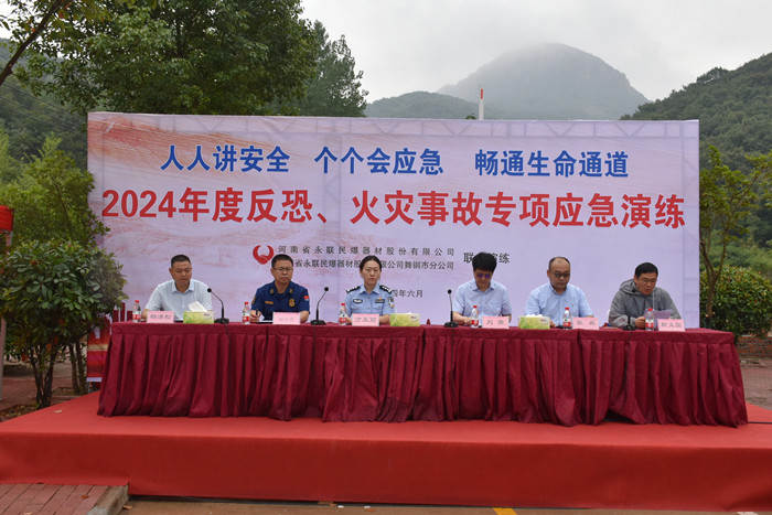 今年6月是全國第23個(gè)“安全生產(chǎn)月”,為進(jìn)一步牢固樹立以人為本、安全發(fā)展的理念,防范化解重大風(fēng)險(xiǎn)、及時(shí)消除安全隱患、有效遏制生產(chǎn)安全事故,2024年6月21日,河南省永聯(lián)民爆器材股份有限公司與舞鋼市分公司聯(lián)合開展以“人人講安全、個(gè)個(gè)會(huì)應(yīng)急——暢通生命通道”為主題的聯(lián)合專項(xiàng)應(yīng)急演練。