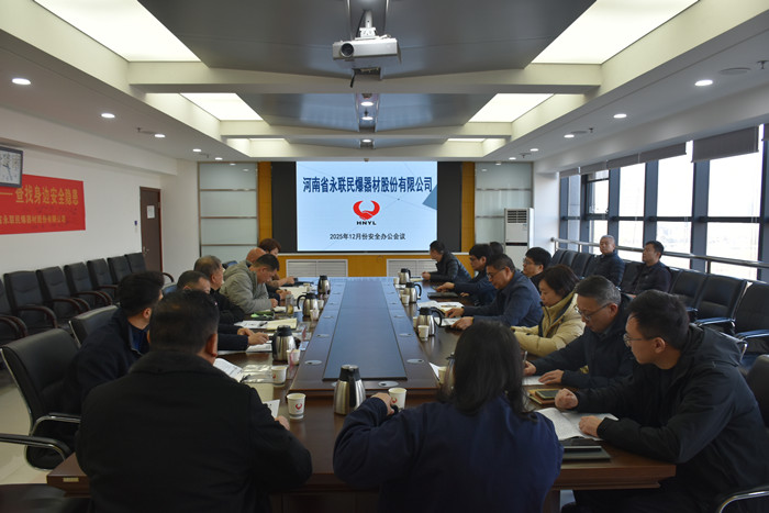 2025年12月26日,河南省永聯民爆器材股份有限公司召開了12月份安全辦公會議。公司安委會成員、安委會辦公室成員以及桐柏、方城縣、寶豐縣、宜陽縣、魯山縣、焦作市等6家分公司負責人參加了會議。會議由公司工會主席黃小虎主持,董事長劉嵩、總經理靳義國參加會議并講話。