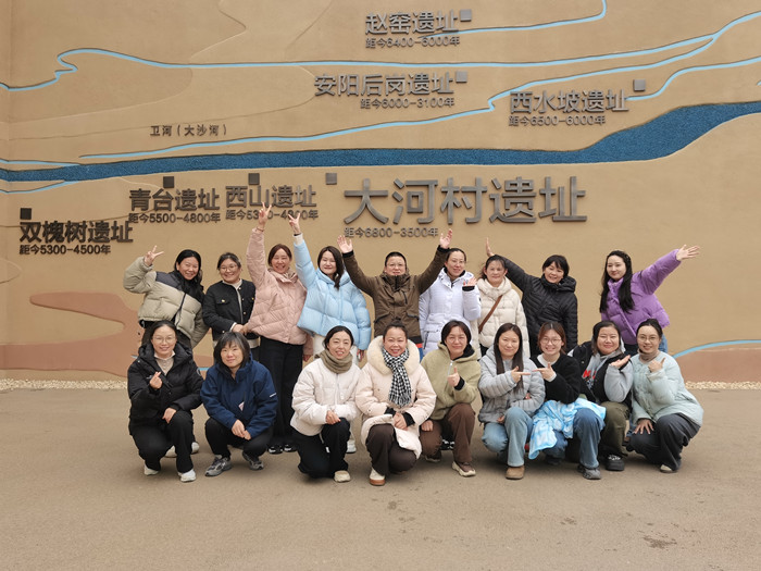 活動伊始,首先來到鄭州市大河村遺址博物館,依次參觀遺跡廳、文物陳列廳,近距離觀賞彩陶雙連壺、天象紋彩陶片等珍貴文物,瞻仰六千年前先民聚落、農耕生活與工藝美學的歷史場景,感受中原文明源遠流長的深厚底蘊。參觀過程中,大家不時駐足凝視、交流,探討仰韶文化的獨特魅力,在沉浸式體驗中增強文化自信,汲取歷史滋養。